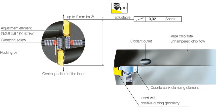 Its main area of usage are machining operations with tolerances > 0.05 and frequently changing machining diameters.